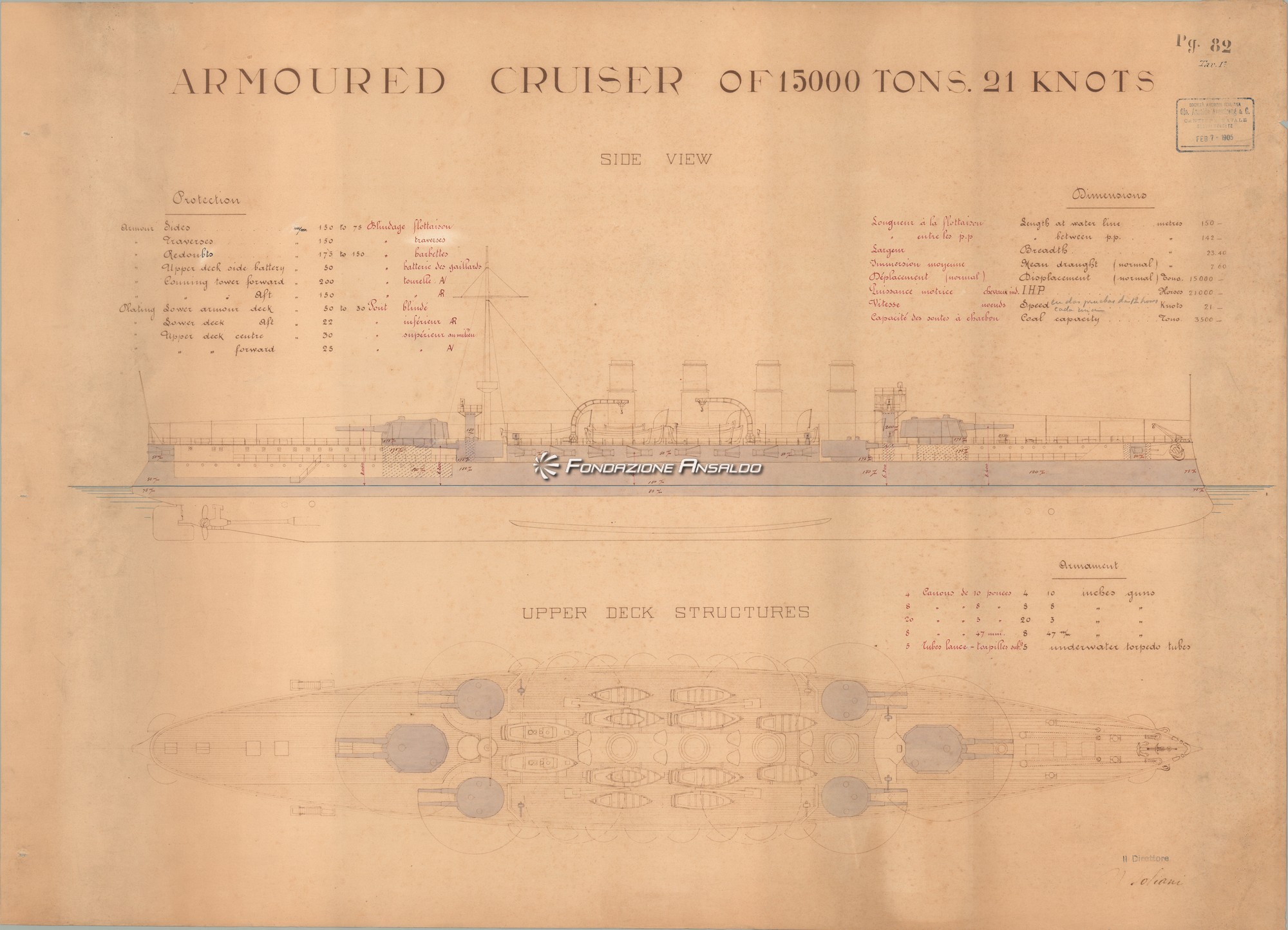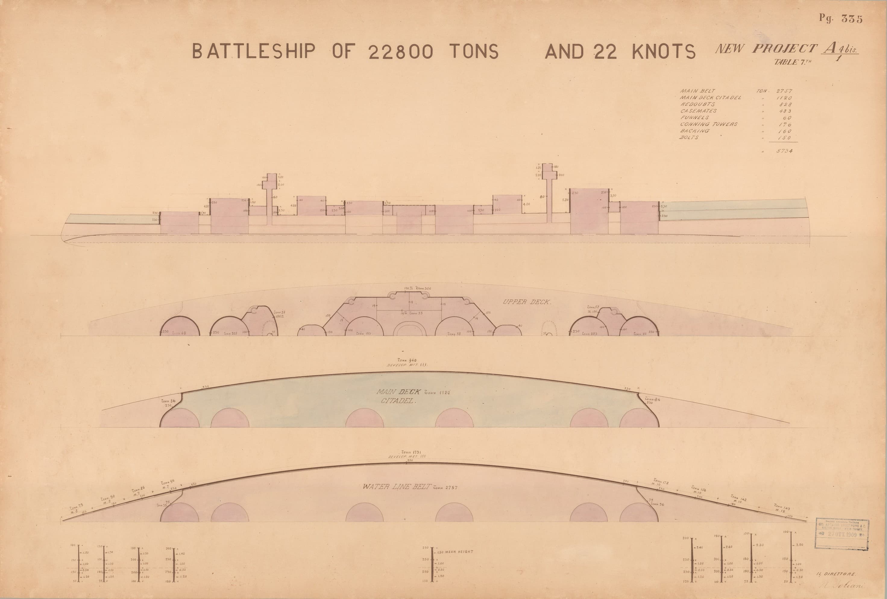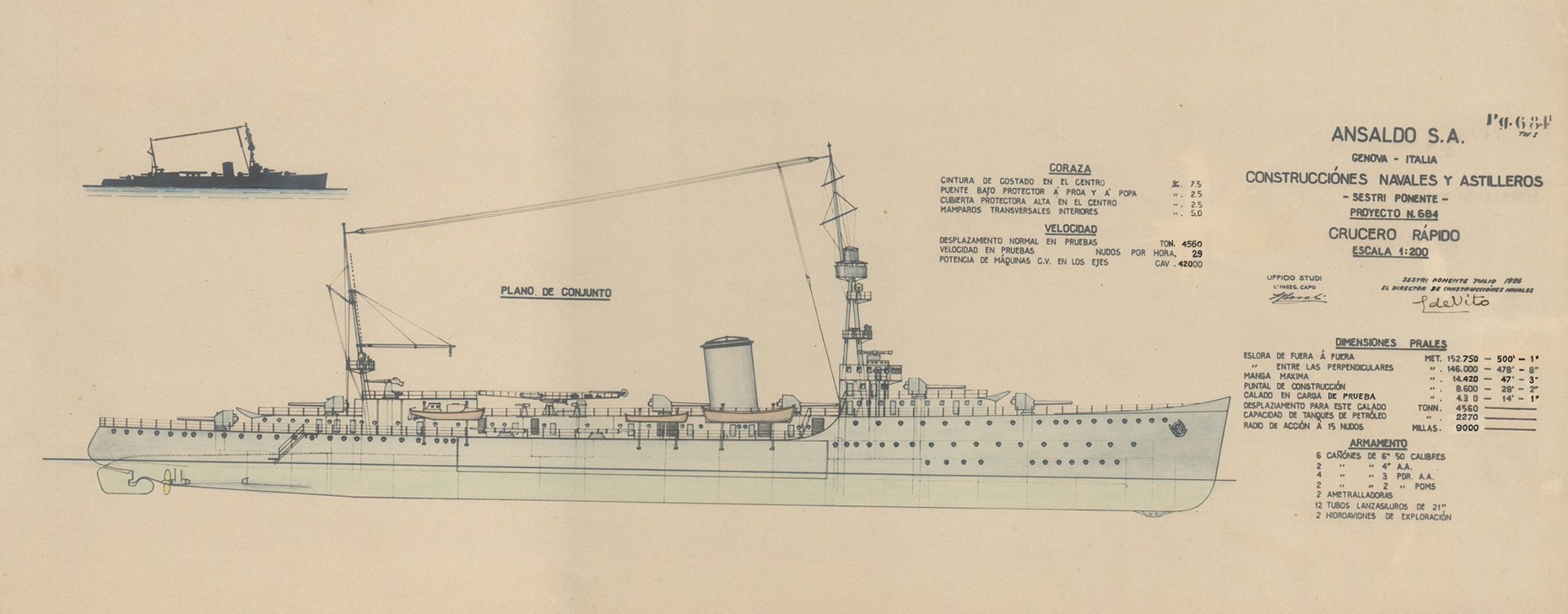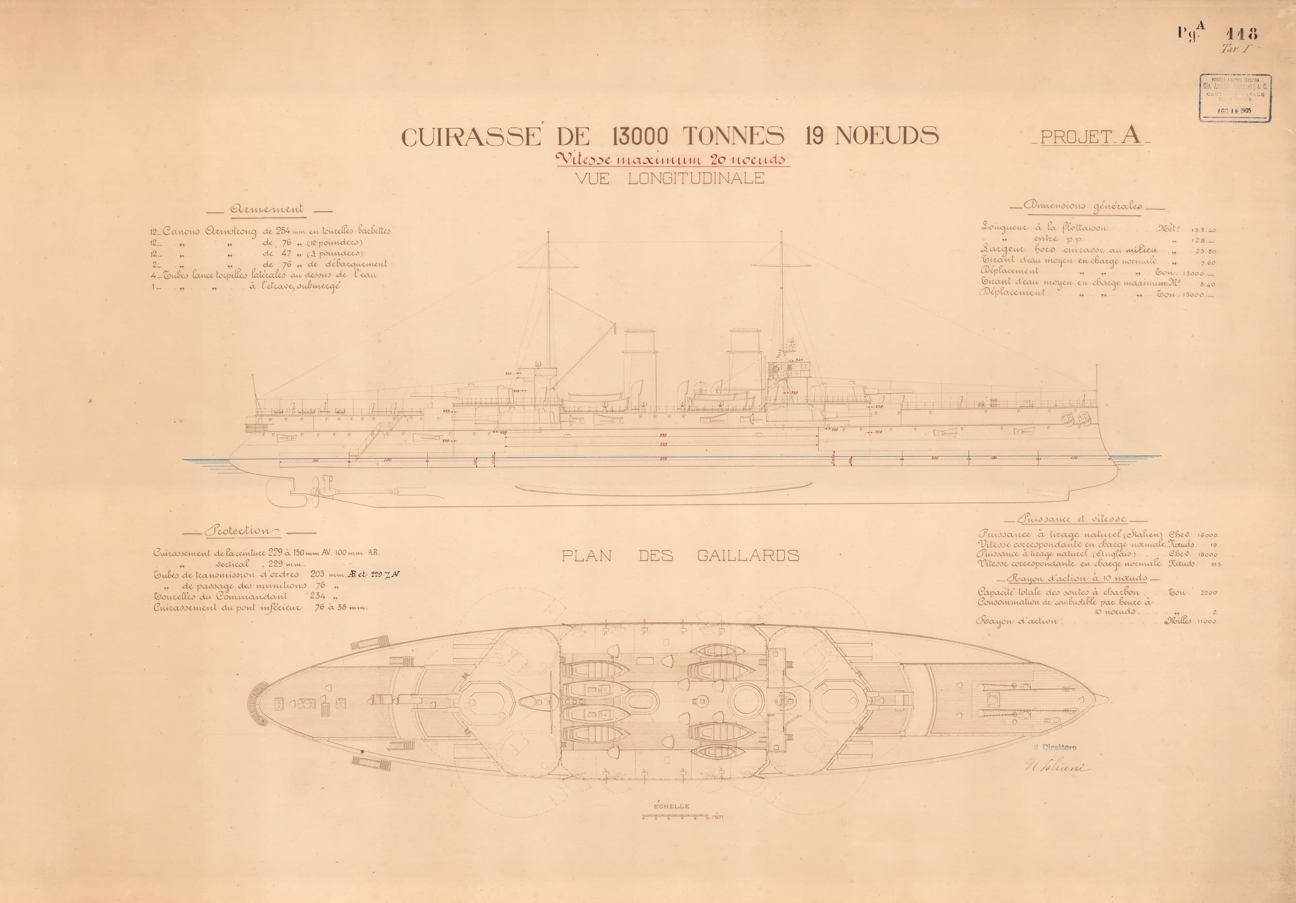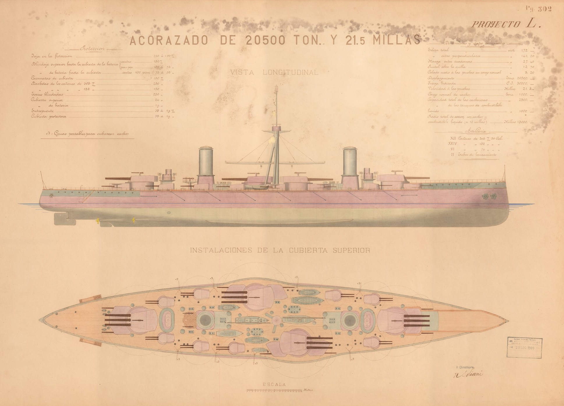 Progetto corazzata di 15.000 t. e 20 nd. per il Governo Argentino (progetto n. 1210)