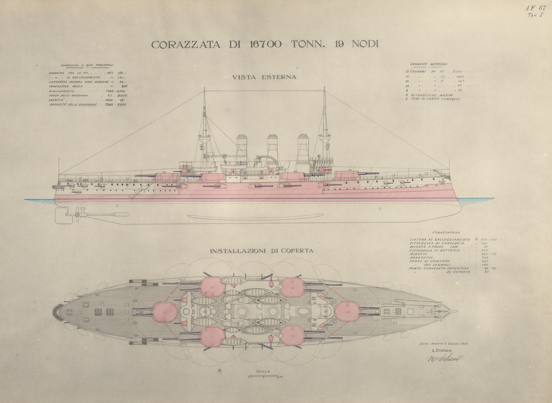 Corazzate da 15.000 t. a 16.700 t. e da 19 nd. e 20 nd. (progetto n. 67)