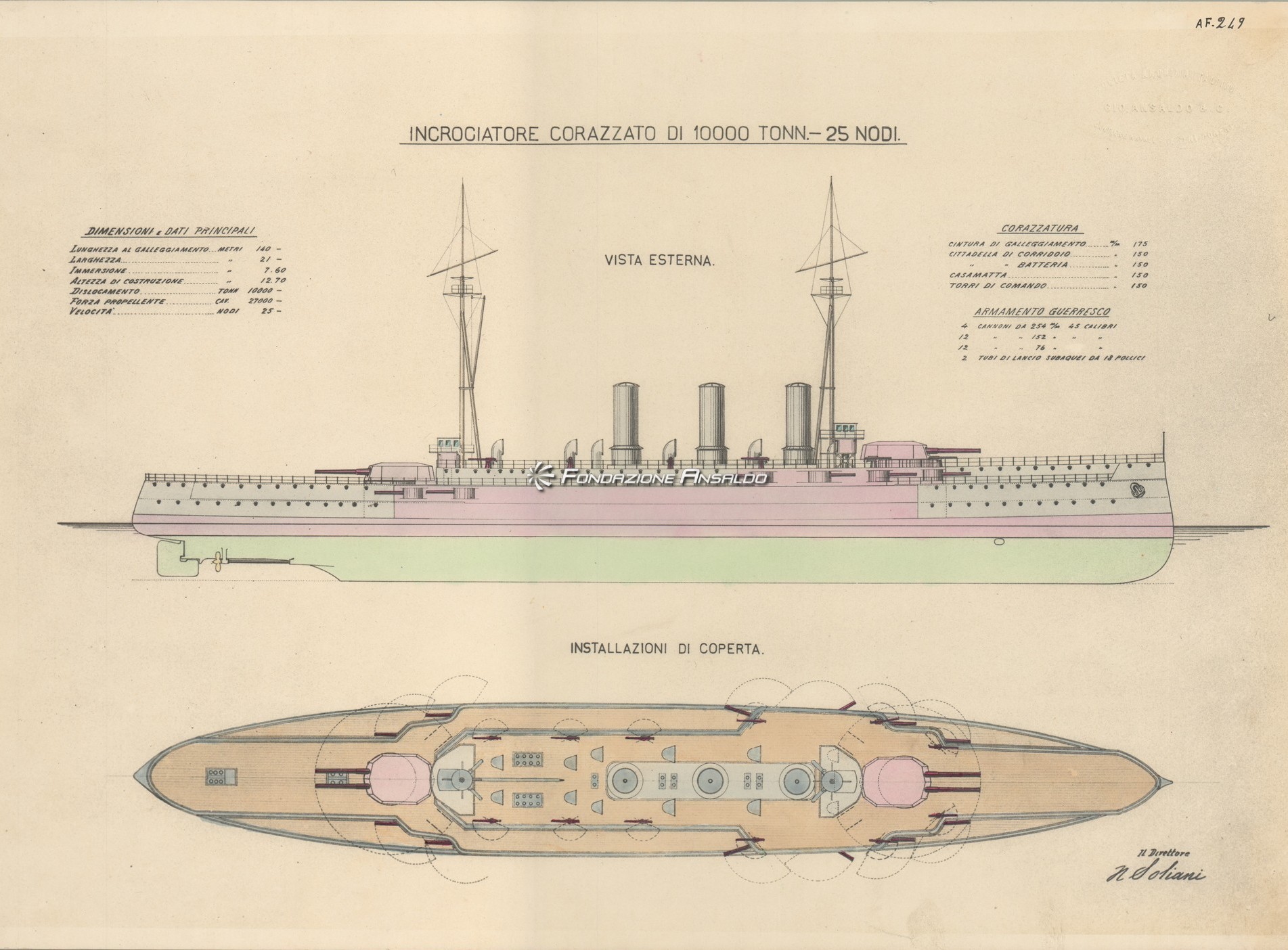 Incrociatore corazzato da 10.000 t. e 25 nd. (progetto n. 249)