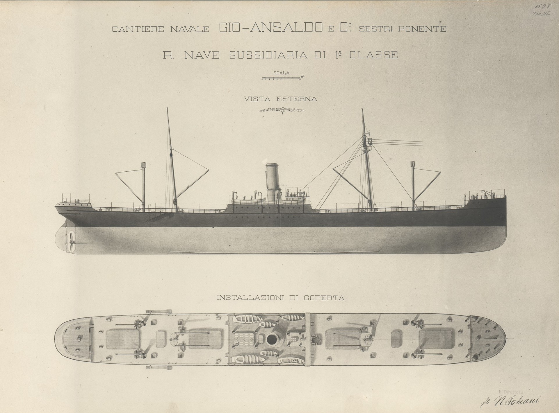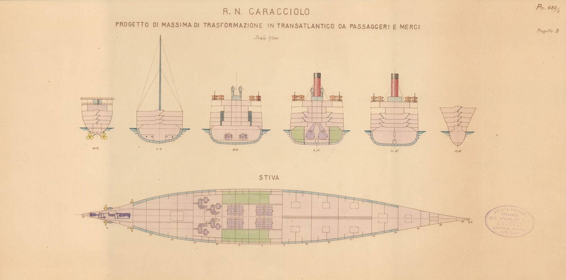 Francesco Caracciolo progetto di massima di trasformazione in transatlantico da passeggeri a merci (progetti nn. 479 - 480)