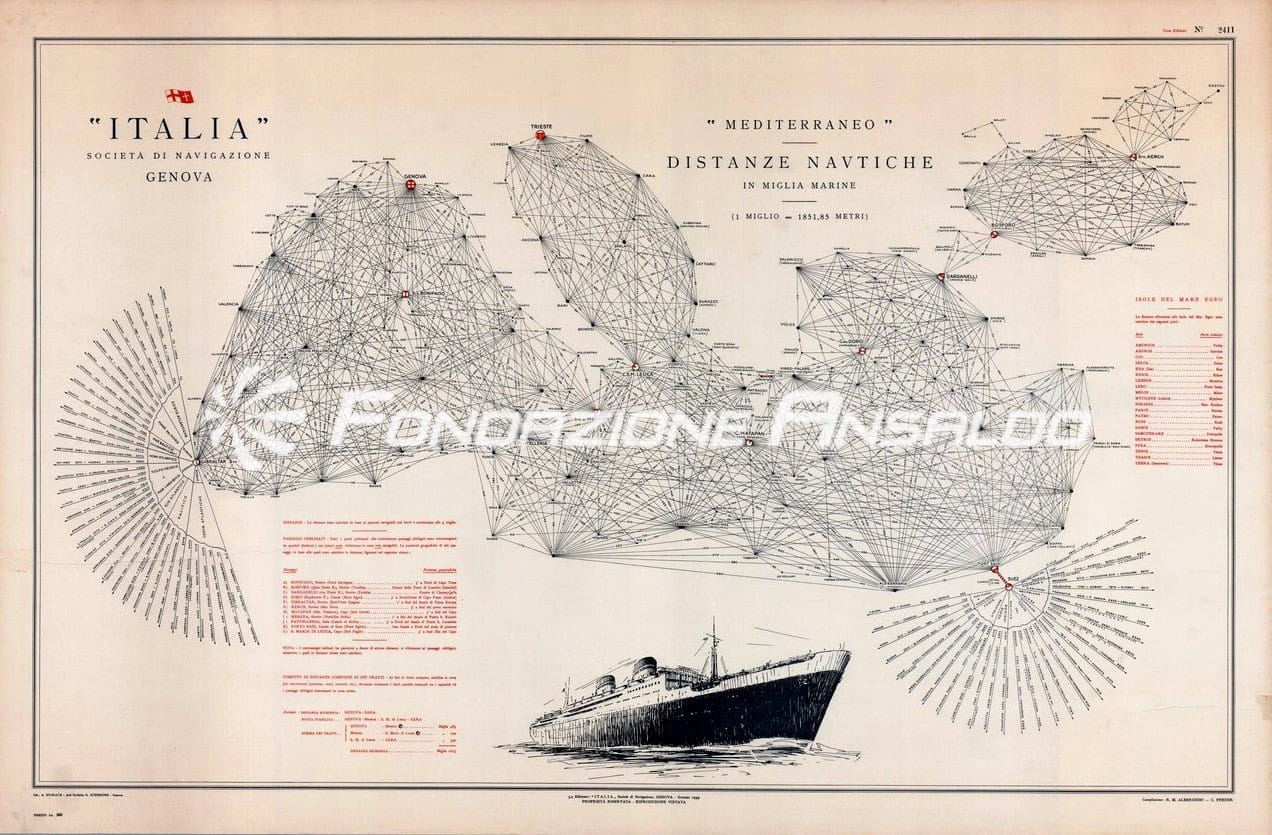 Mediterraneo - carta delle distanze nautiche