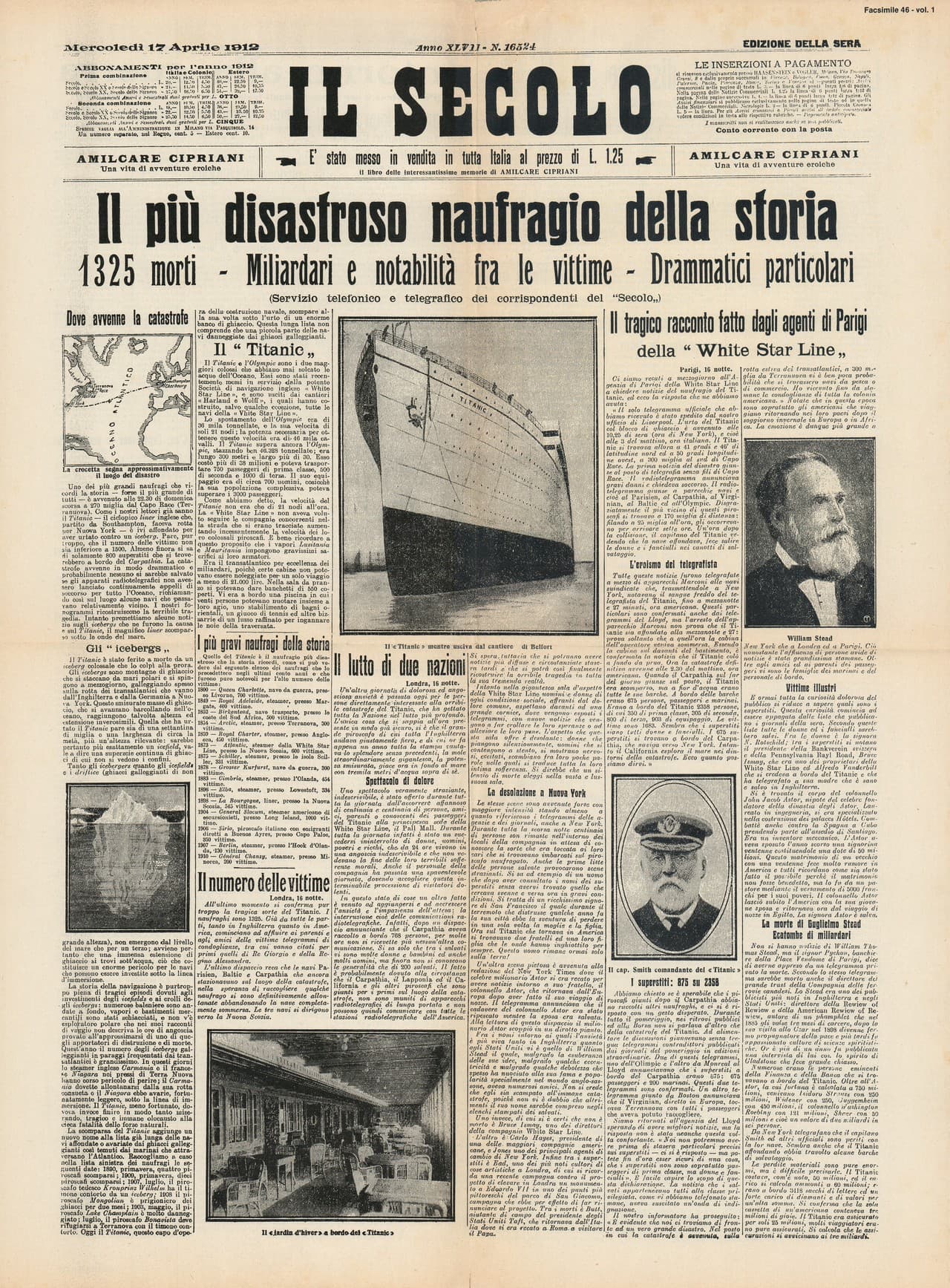 Il Secolo - edizione della sera dedicata al Titanic
