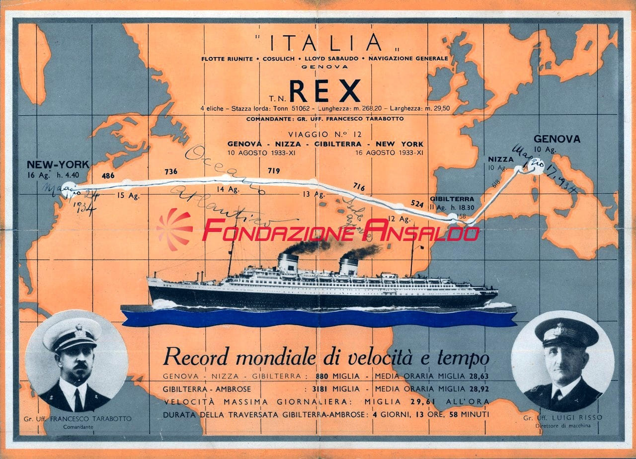 Rex (t/n) - titolo di viaggio da New York a Napoli a bordo del transatlantico Rex