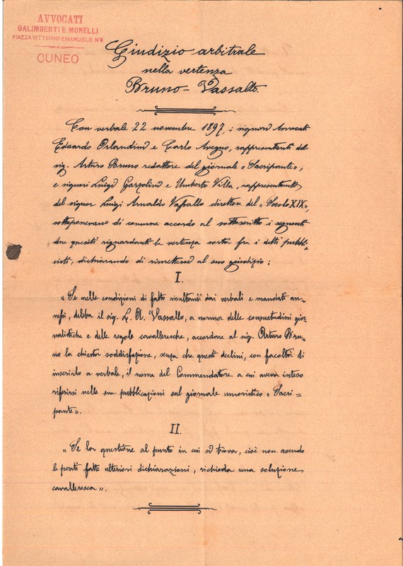 Vertenza tra Arturo Bruno e Luigi Arnaldo Vassallo