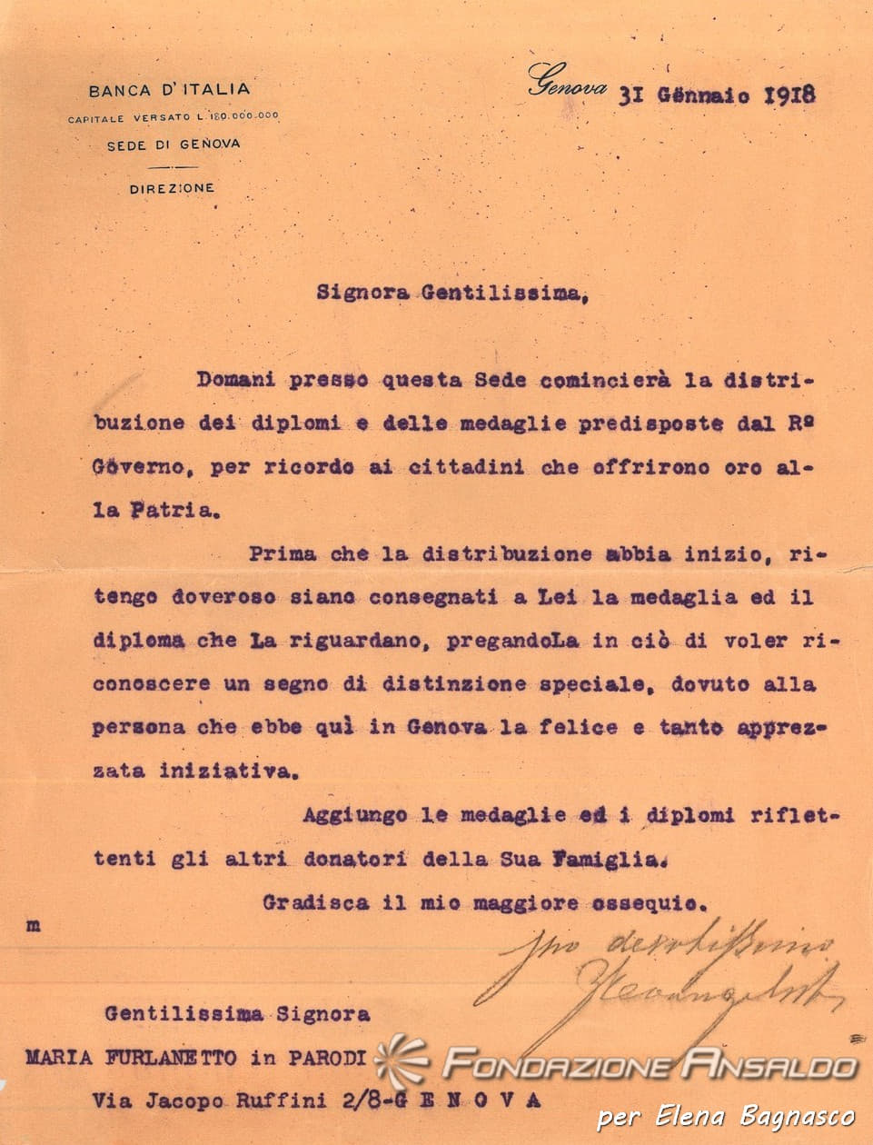 Furlanetto Maria in Parodi - Corrispondenza