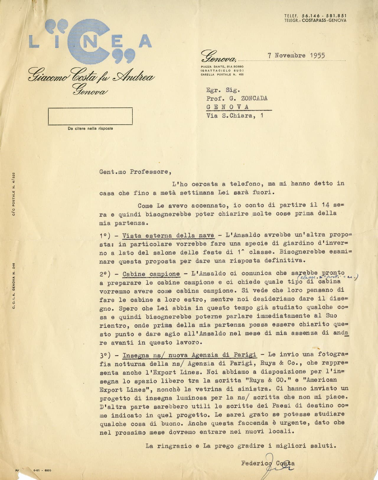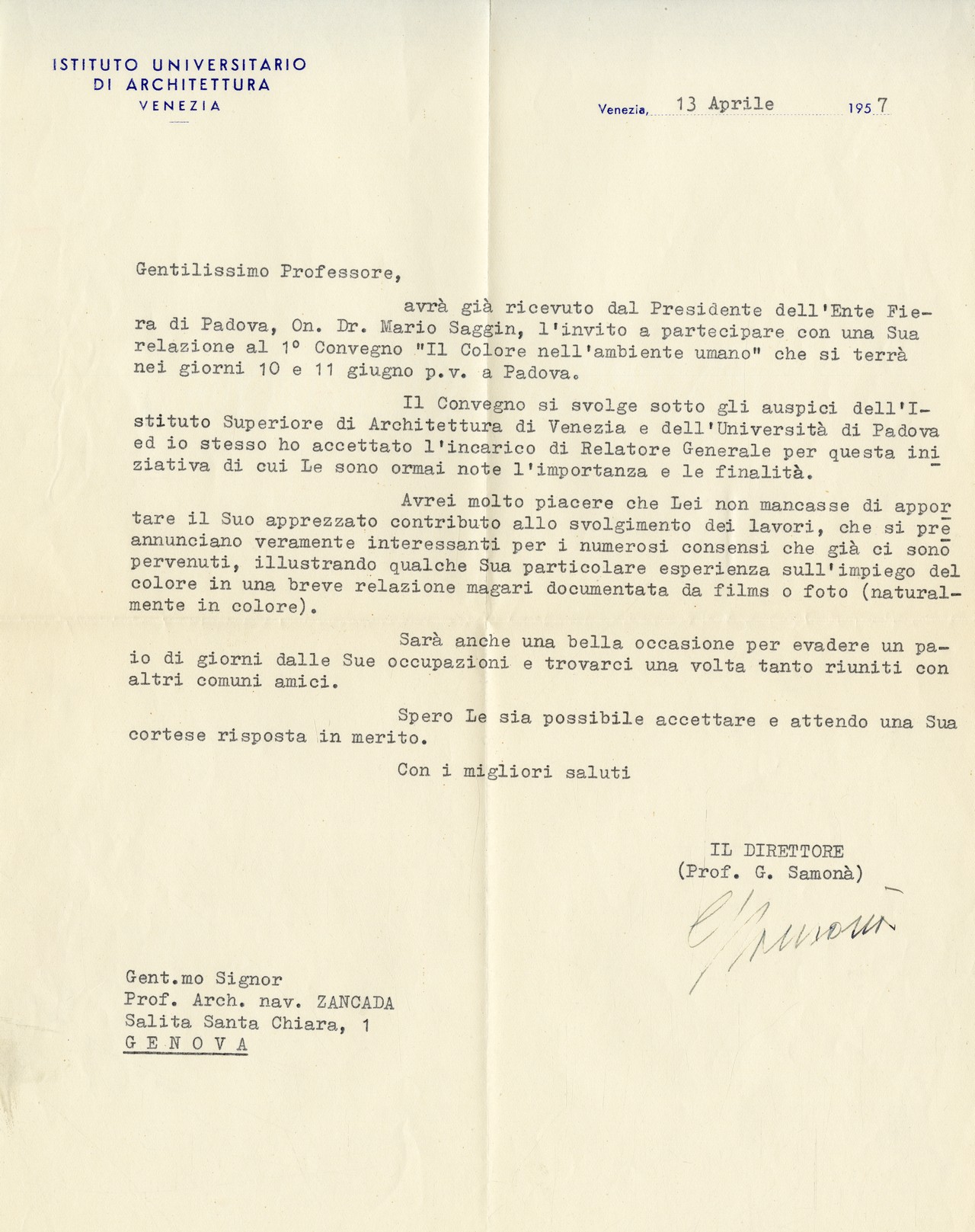 Il carteggio è relativo agli anni genovesi di Zoncada, dal 1948, anno del suo arrivo nella città ligure, al 1973 circa.