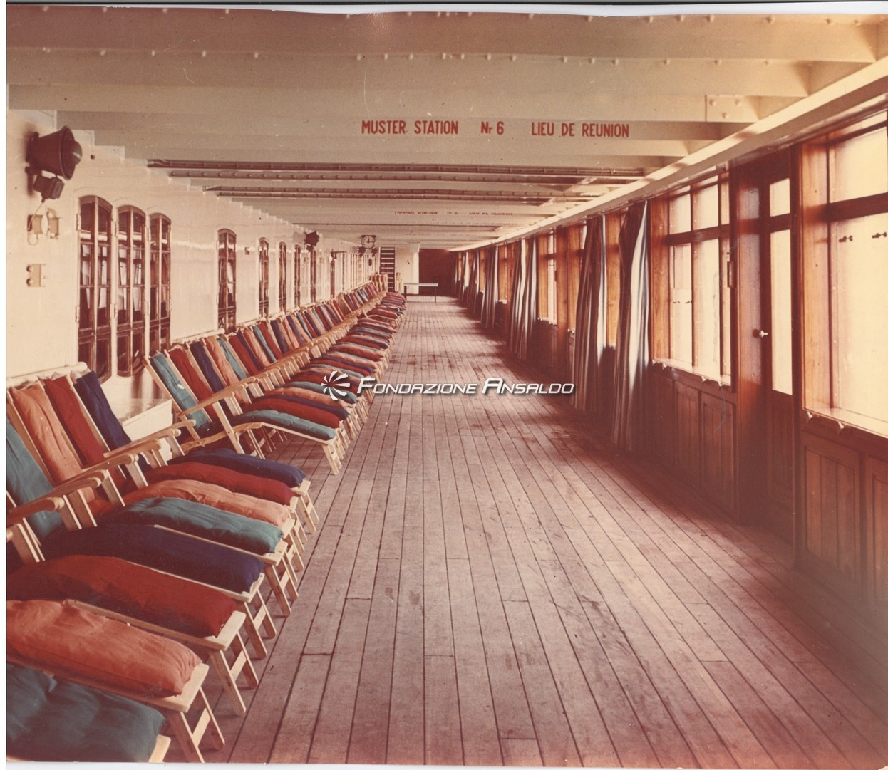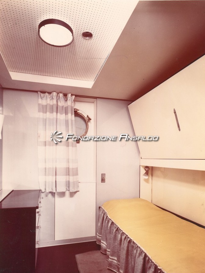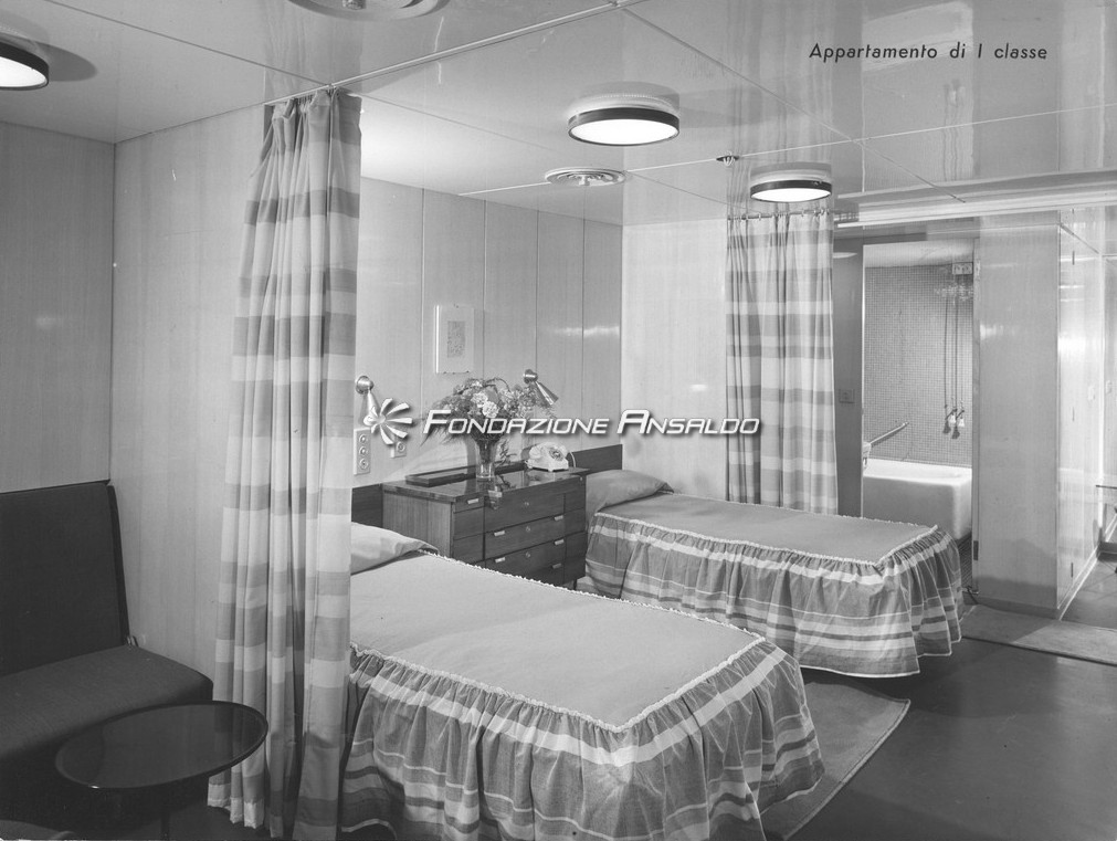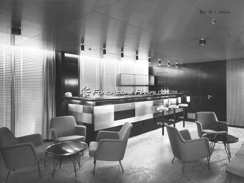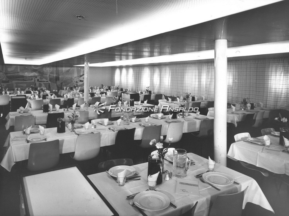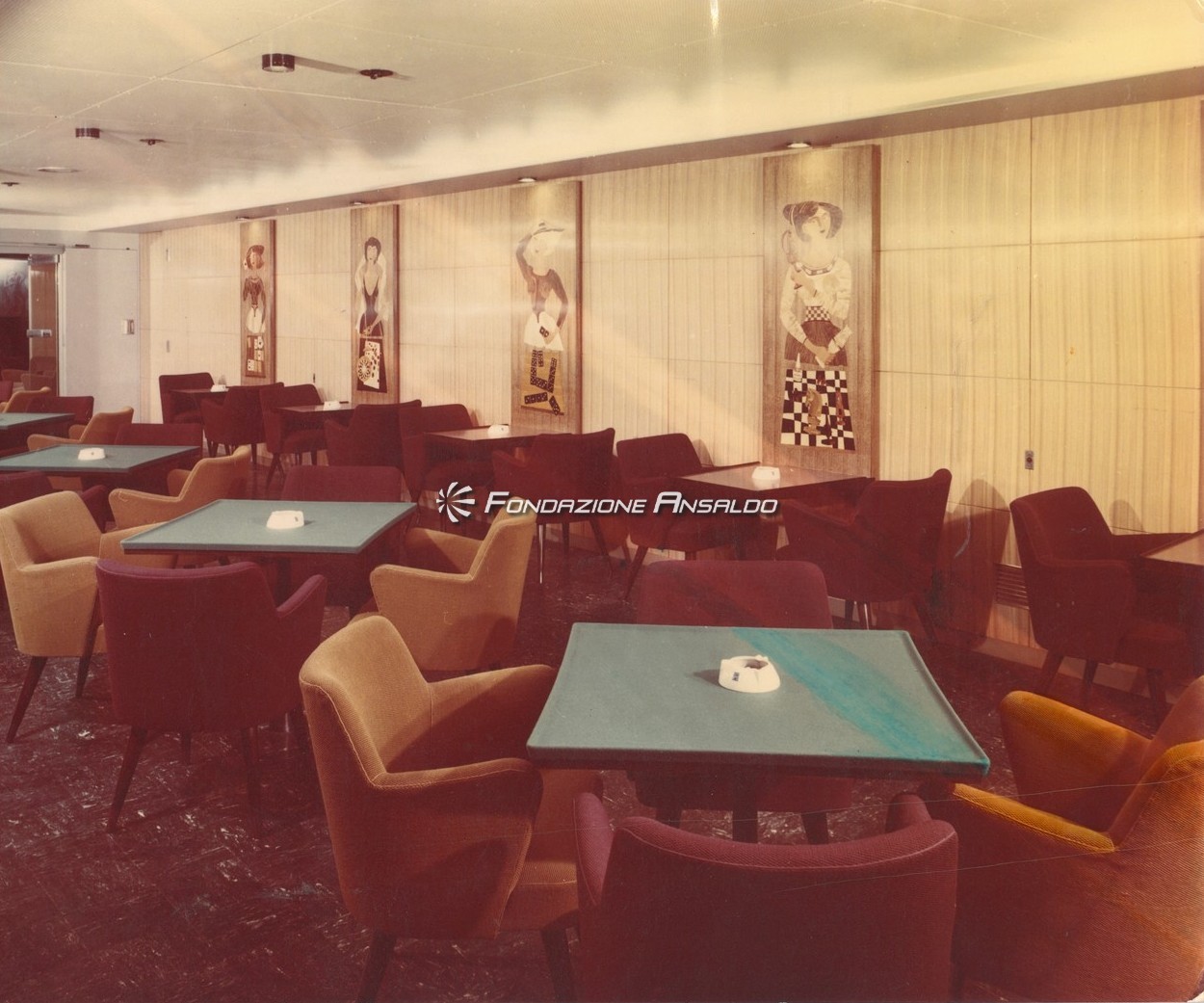 Angelo Costa affidò interamente a Nino Zoncada l’allestimento del nuovo transatlantico. Gli ambienti della nave furono caratterizzati da linee essenziali e da ampie superfici nude: le vaste pareti rivestite in laminato erano interrotte solo da ricchi tendaggi, mentre esili puntelli conferivano leggerezza alle sale, poltrone e tavolini con scocca in metallo accentuavano l’impressione di leggerezza dell’arredo.