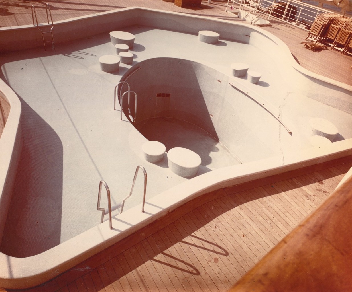 La Federico C inoltre disponeva di un lido con piscina per ogni classe, le vasche hanno un contorno con disegno organico, che diviene la forma tipica dei disegni di Zoncada.