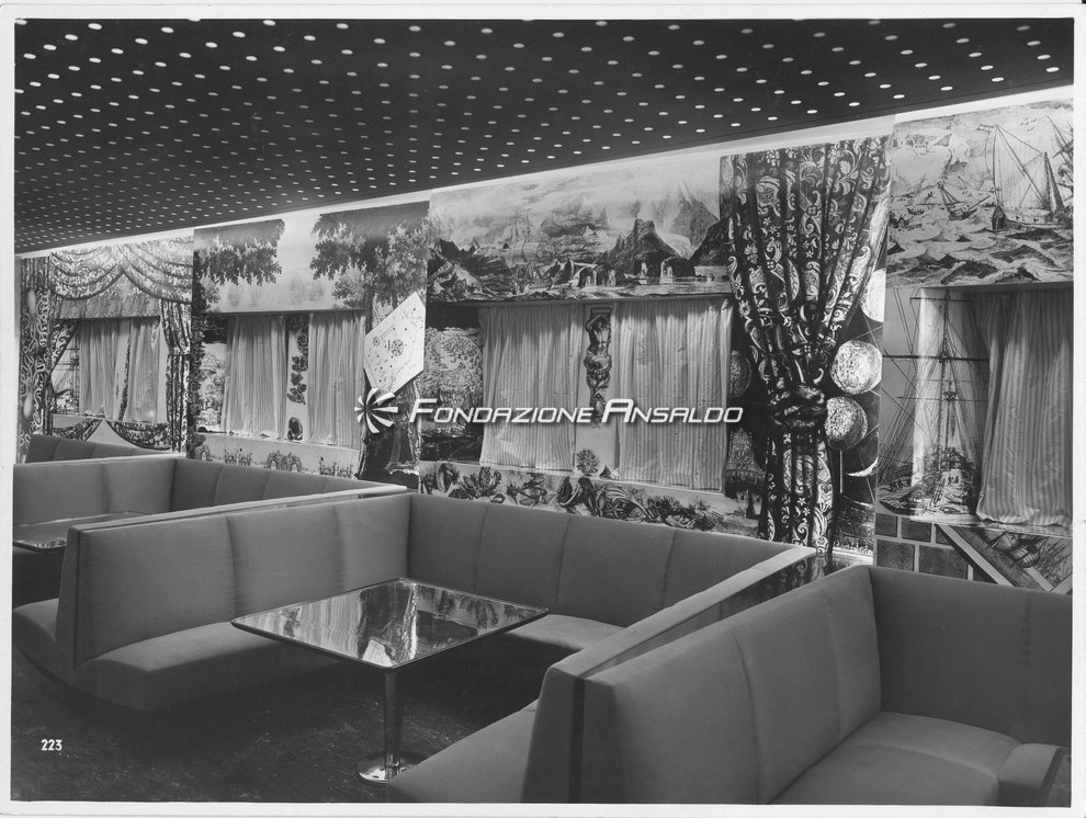 Inoltre per la realizzazione dell’allestimento decorativo della nave vennero chiamati artisti di fama internazionale, come: Fausto Melotti, Edina Altara, Pietro Melandri e Lucio Fontana.