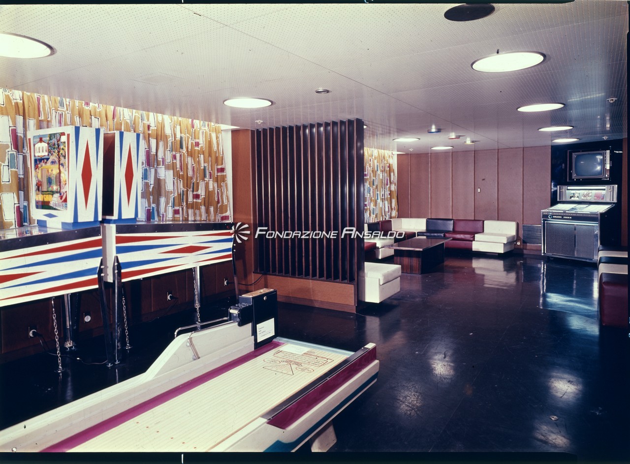 Il progetto di Zoncada si basava sulla continuità decorativa, tutti i saloni furono realizzati su una precisa gamma cromatica in accordo con il nome delle sale: Ambra, Opale, Rubino e Turchese. Il locale più importante era la sala delle feste di prima classe (Ambra) che seguiva lo sviluppo curvo del frontale della nave, arredata con poltrone di velluto color ambra e beige, il pavimento era rivestito in moquette in lana color marrone testa di moro mentre sulle pareti erano esposte due opere su tela di Massimo Campigli. Per tutti gli altri saloni, Zoncada si affidò ad artisti con cui aveva consolidata esperienza: Massimo Campigli e i genovesi: Emanuele Luzzati, Oscar Saccorotti, Giovanni Solari, Luigi Spacal, Enrico Paulucci, Pino Casarini e Ferruccio Quaia.