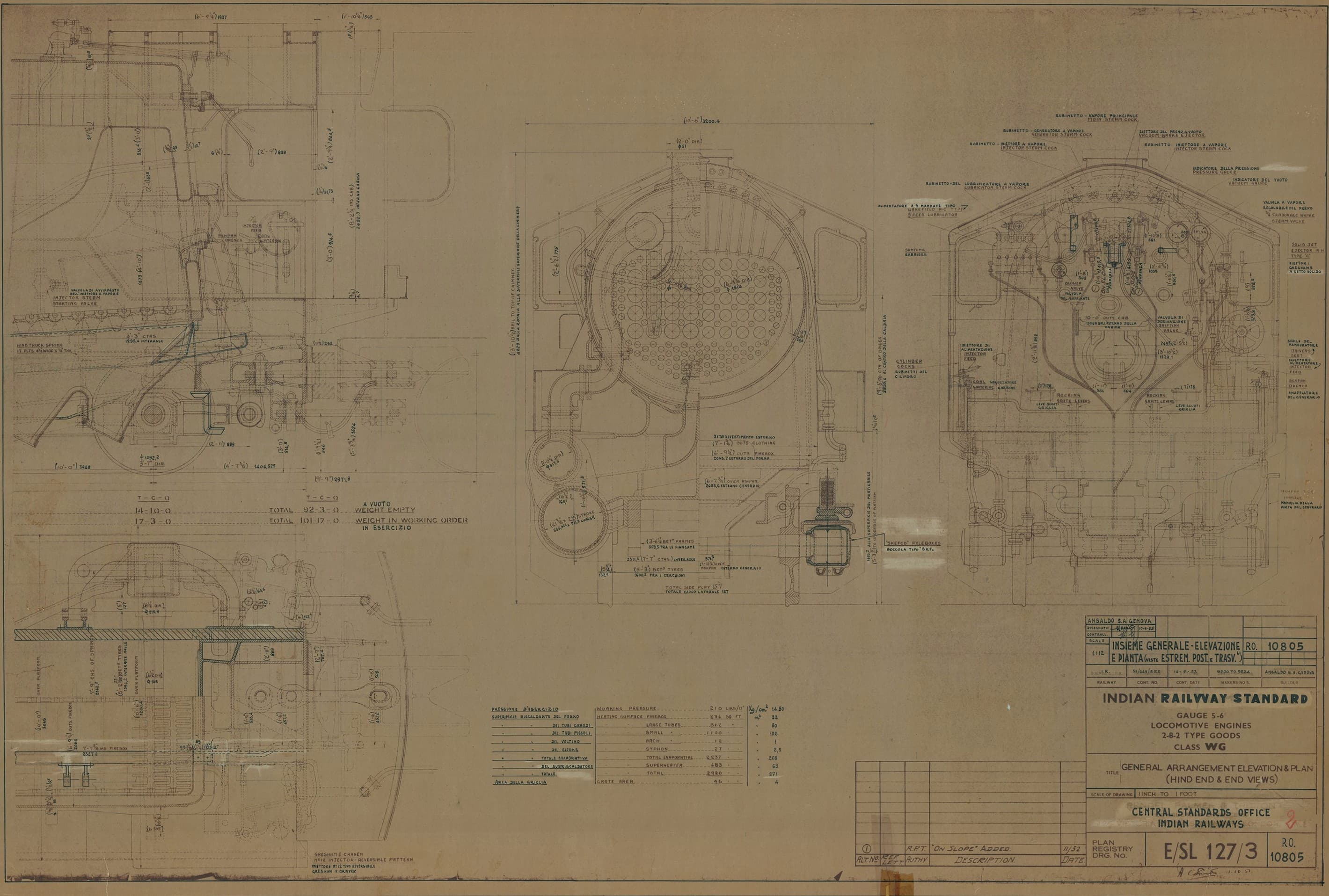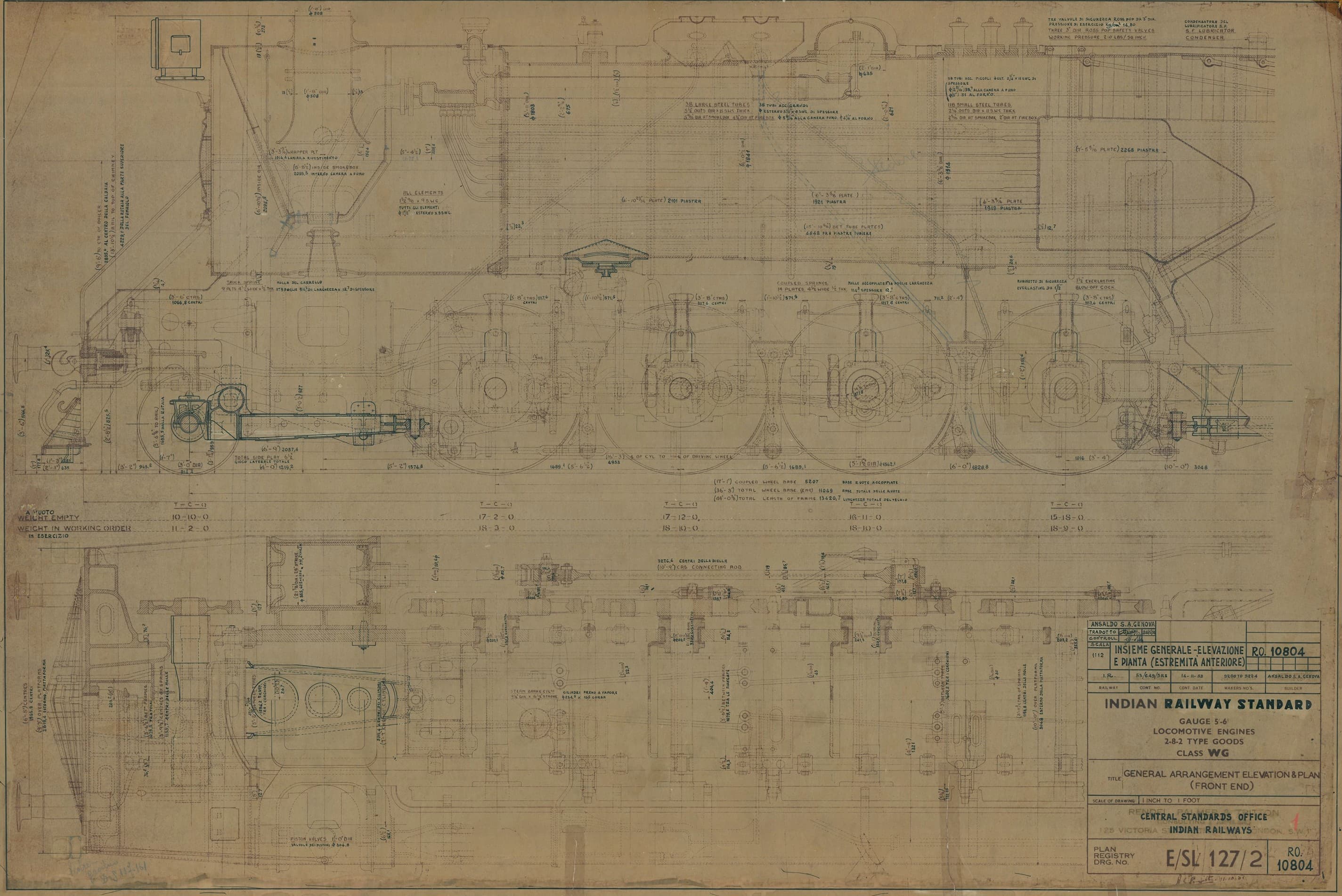 Locomotive indiane 2-8-2 classe WG - Insieme generale - Elevazione e pianta