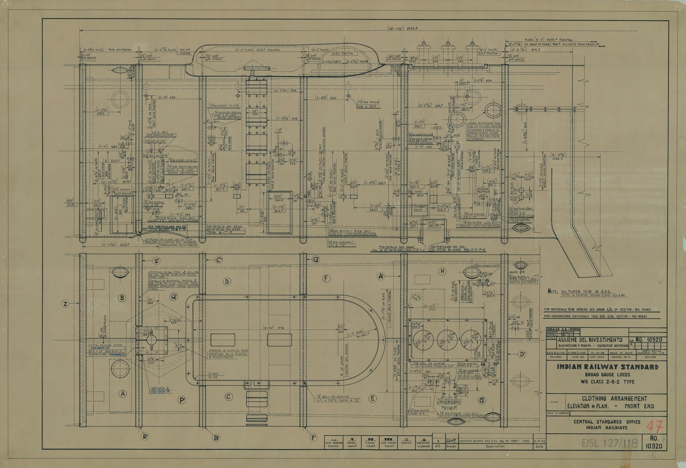 Locomotive indiane 2-8-2 classe WG - Assieme del rivestimento - Elevazione e pianta