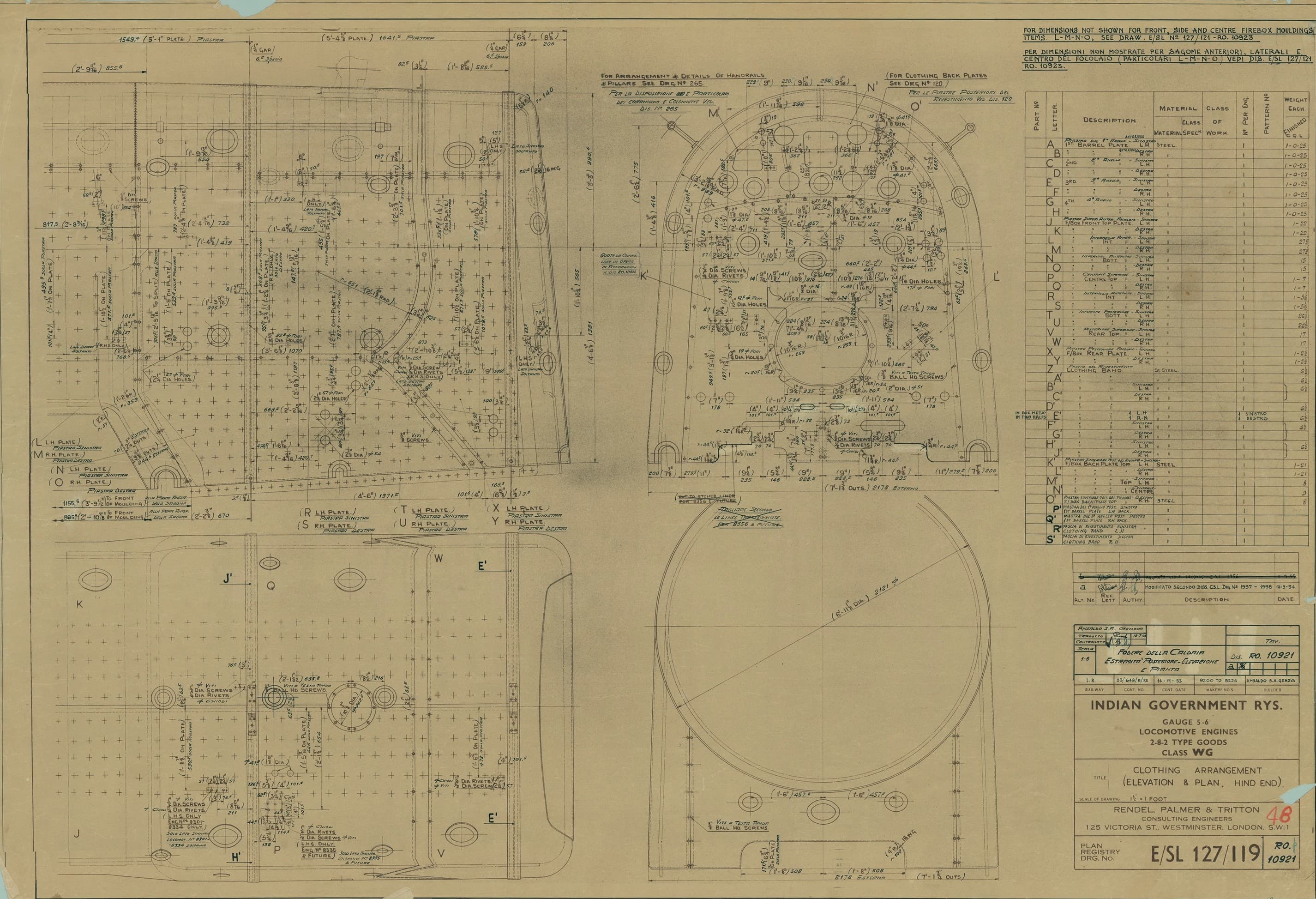 Locomotive indiane 2-8-2 classe WG - Fodere della caldaia - Elevazione e pianta