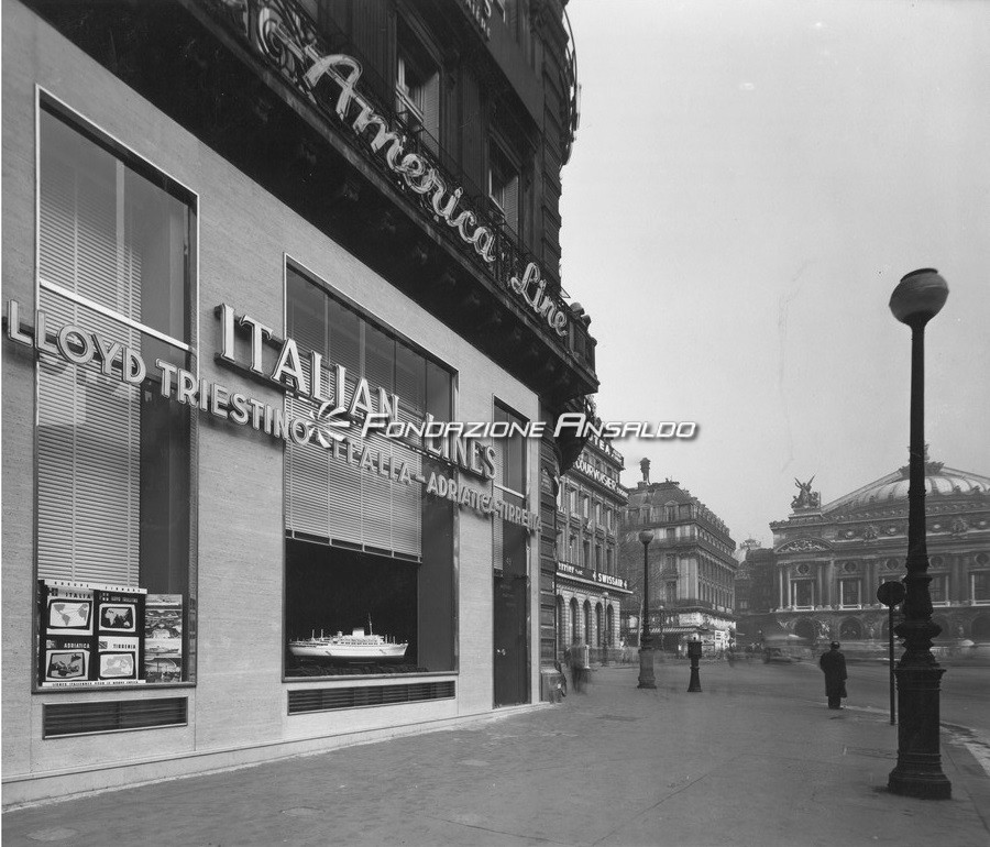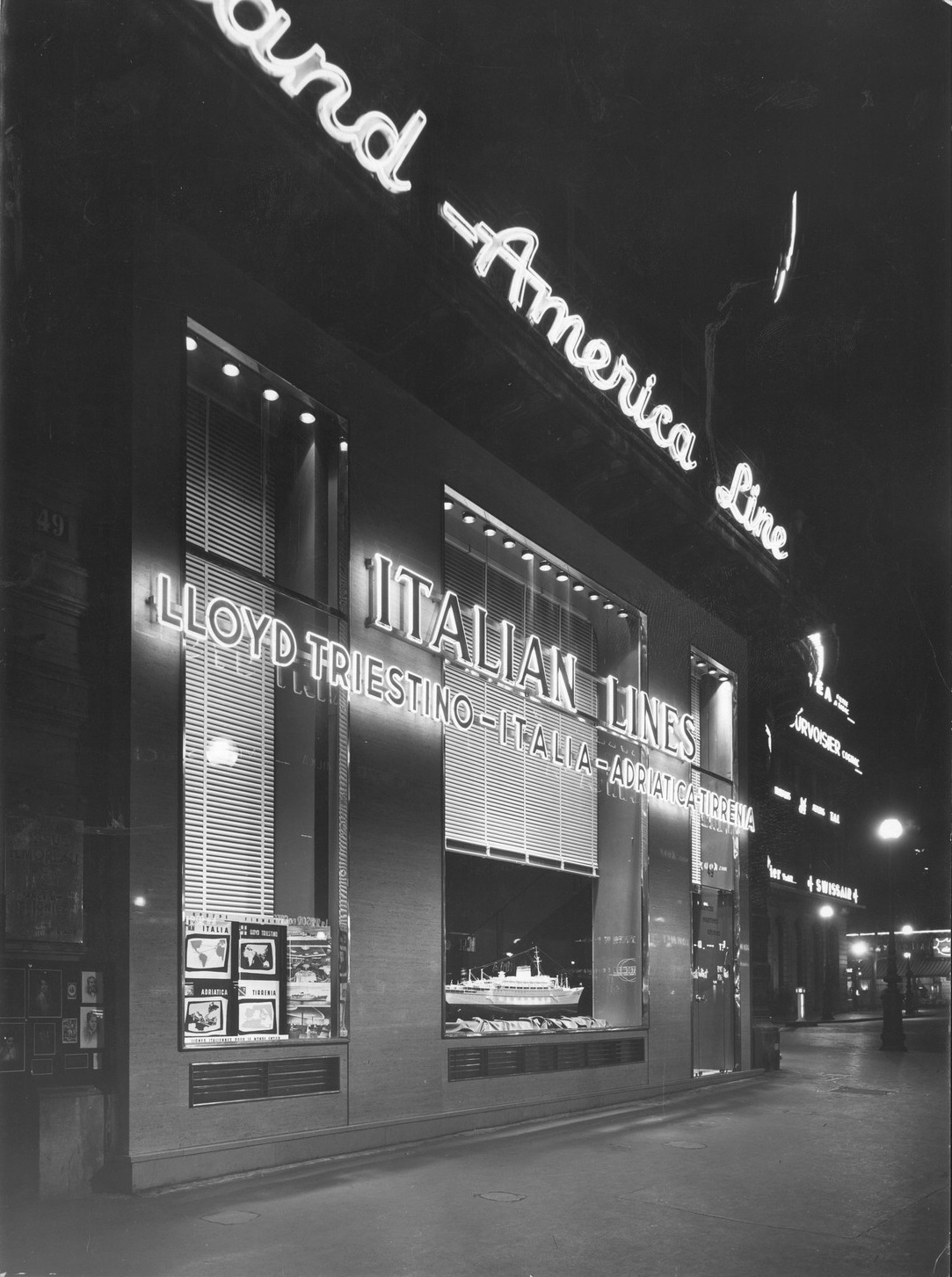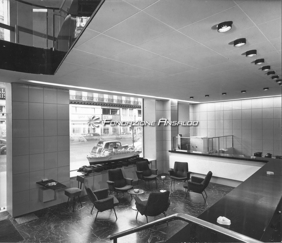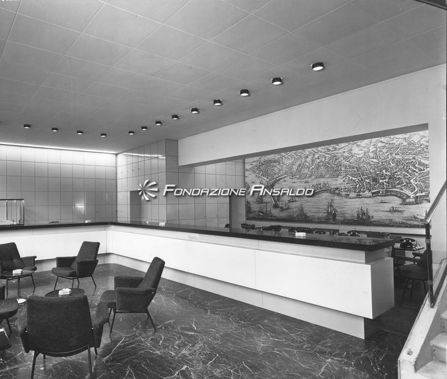 Riproduzioni fotografiche degli esterni e interni di una delle sedi della società Italia di Navigazione, compagnia di navigazione di bandiera italiana di maggiore prestigio e leader nel trasporto di passeggeri, di merci e nello scenario internazionale del trasporto intermodale di contenitori via mare. Nell'ambito della navigazione internazionale era nota sotto l'inconfondibile nomenclatura di Italian Line.