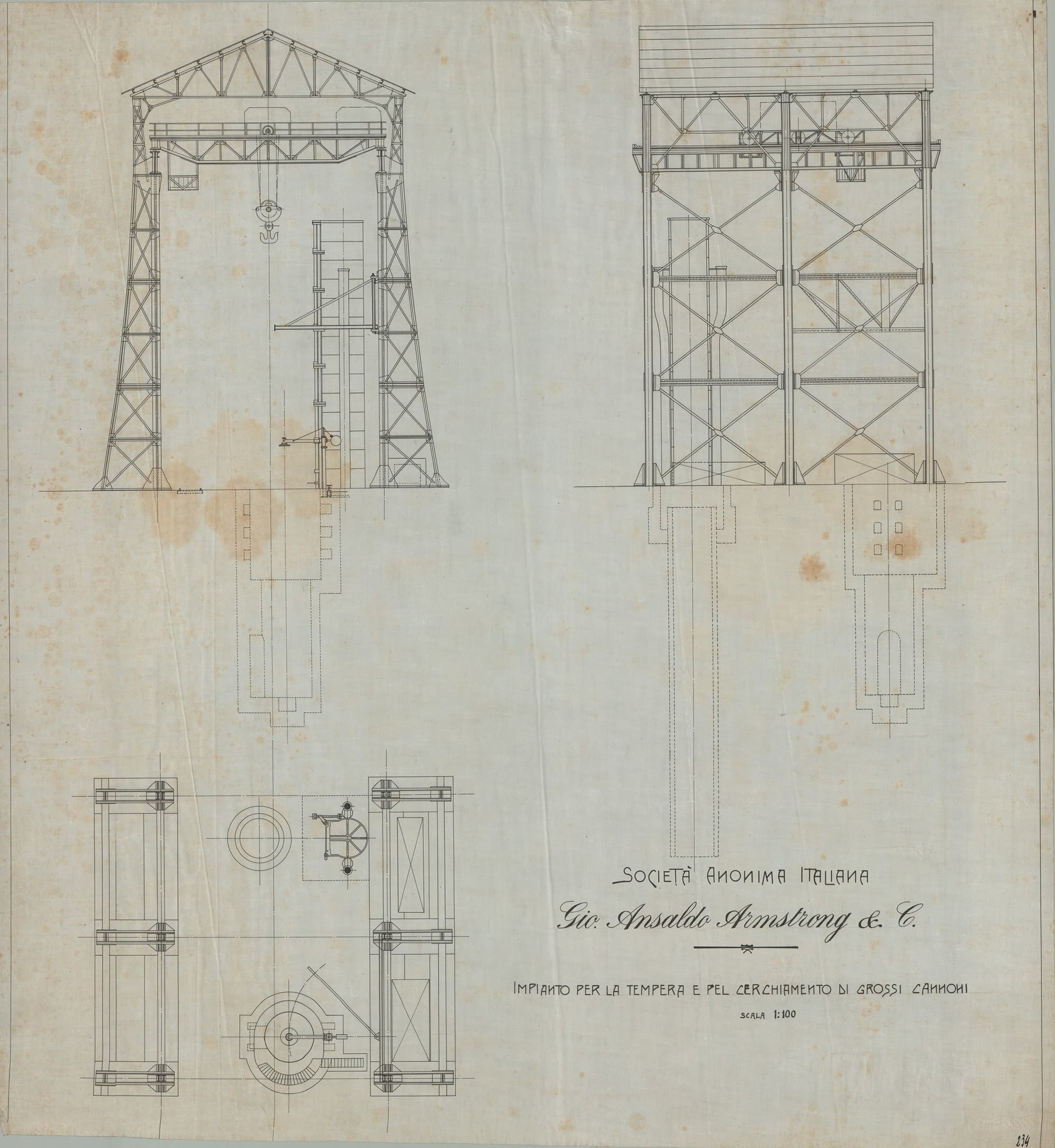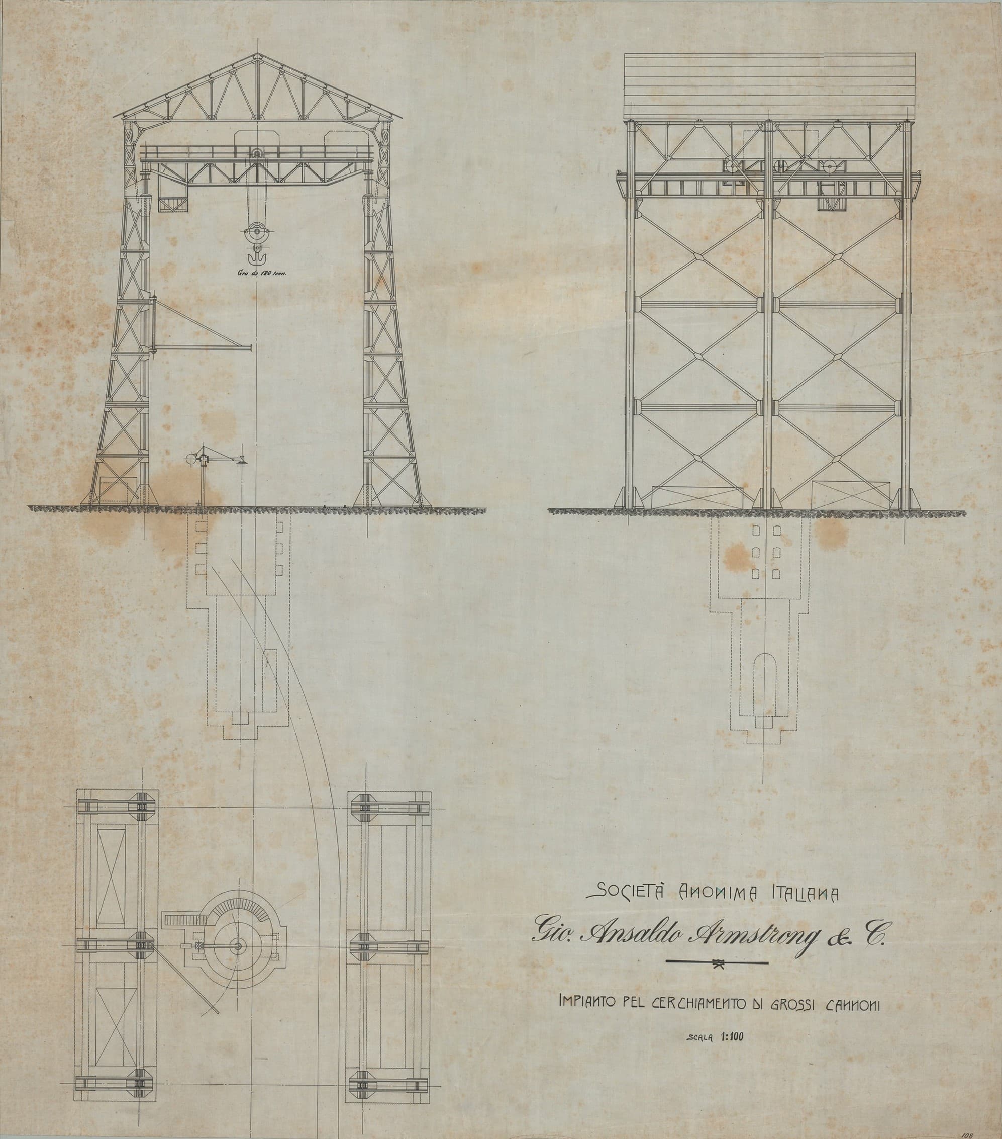 Tettoia per la cerchiatura dei cannoni