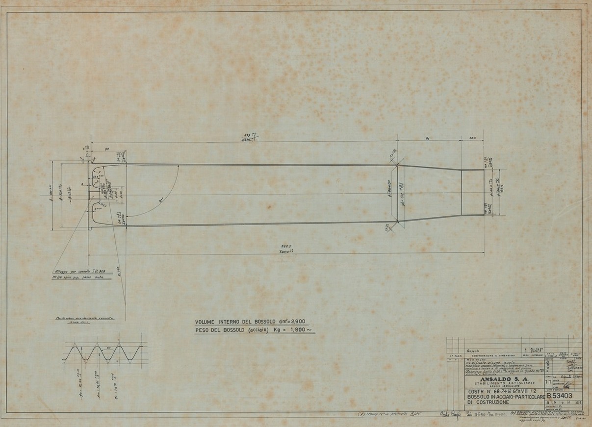 Mortaio da 305/10 M. 16 Skoda - tracciato sbozzati bocca da fuoco