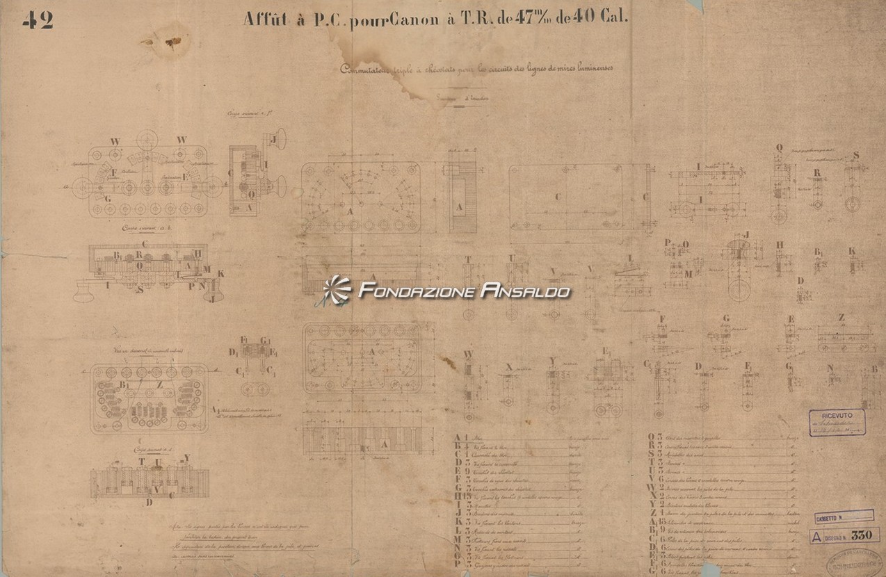 Cannone da 47 - triplo interruttore con reostati per i circuiti delle linee luminose di mira