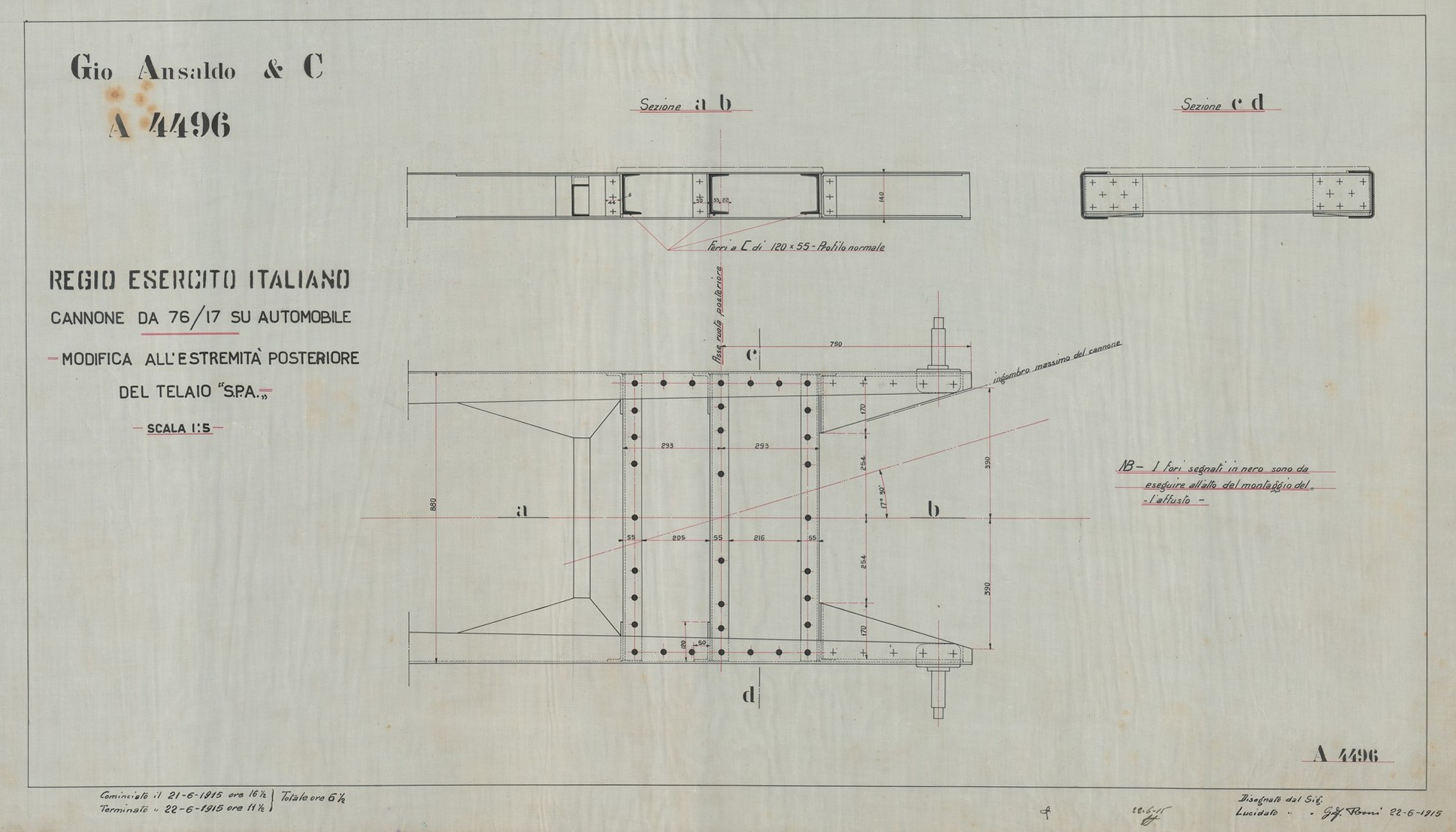 Cannone da 76/17 su automobile - modifica del telaio "S.P.A"