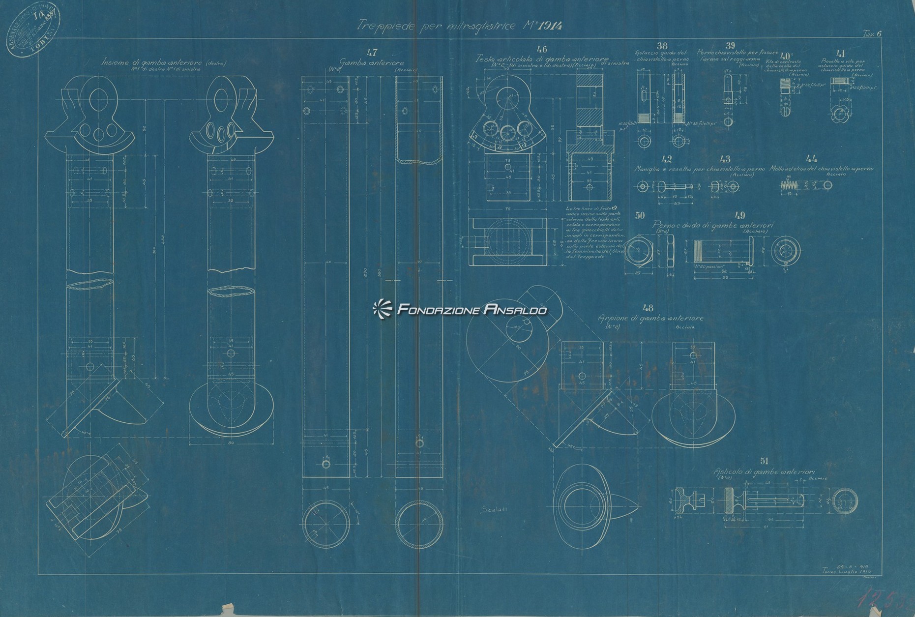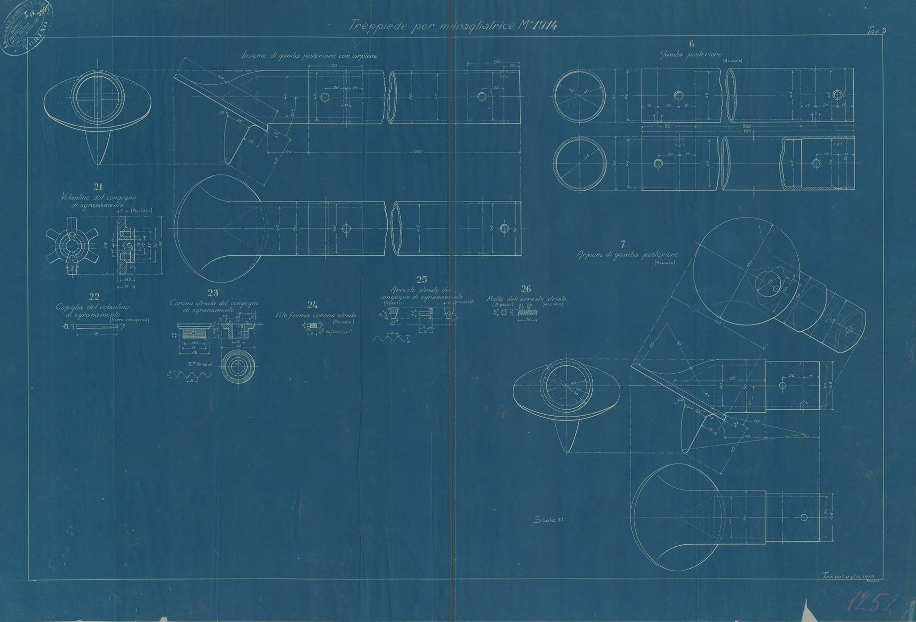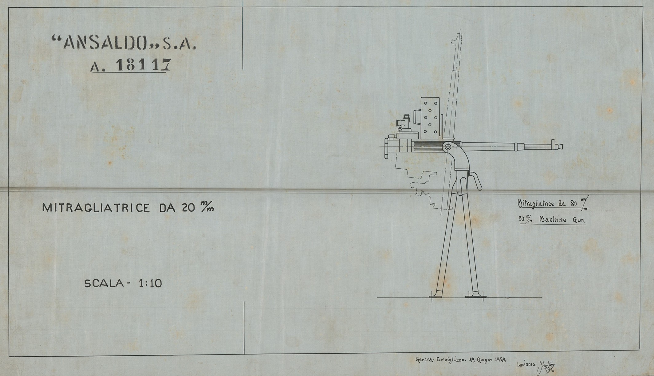 Tra i disegni conservati sono presenti quelli di una mitragliera sperimentale di grosso calibro con caricatore da 6 colpi e denominata “Tipo A”. Stono stati rinvenuti anche lucidi di mitragliatrici Maxim, Colt e Fiat.