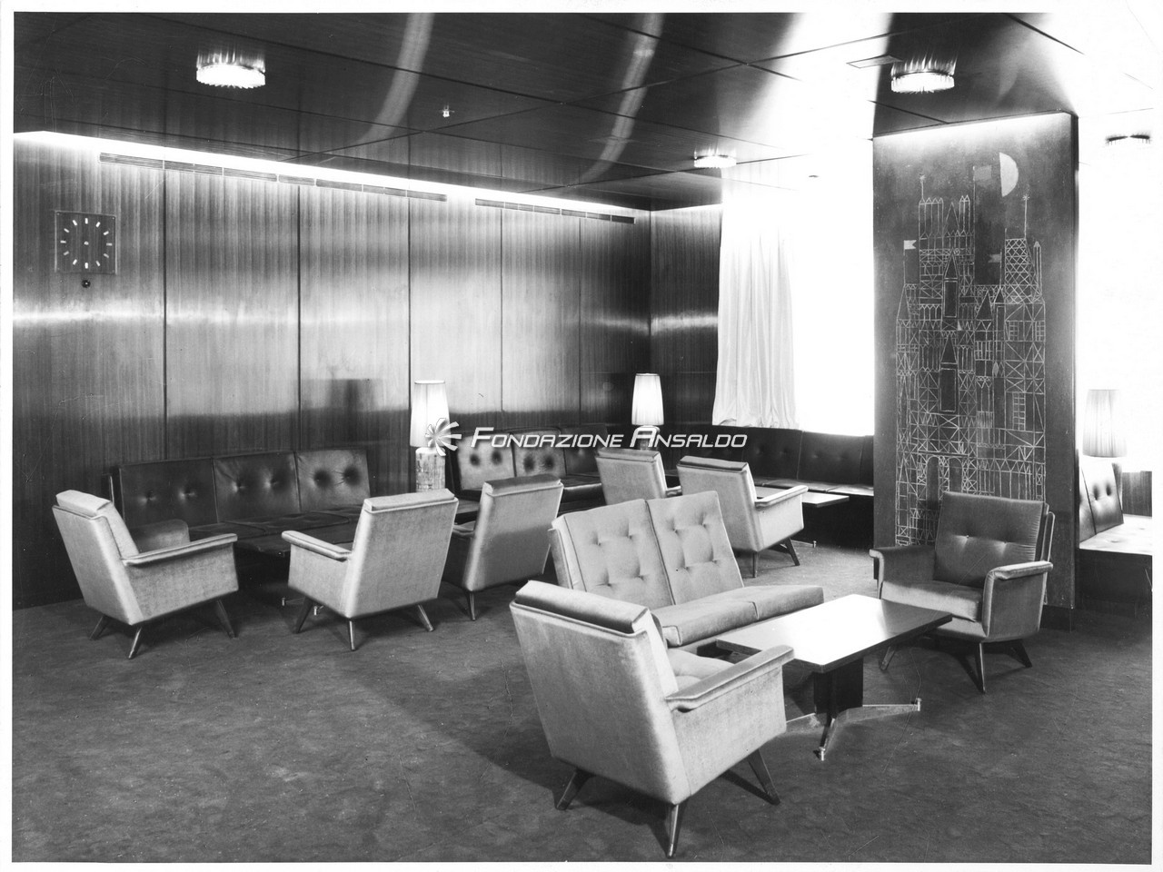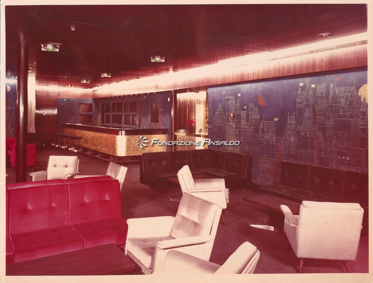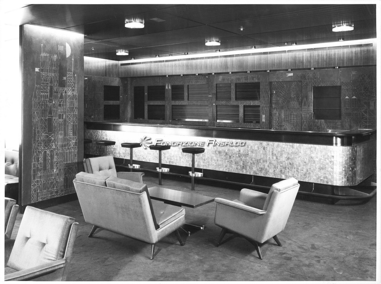 "Studio Architettura Prof. Nino Zoncada. Costruzione 1876 - Home Lines - Main deck - Bar 1a classe - Sistemazione"