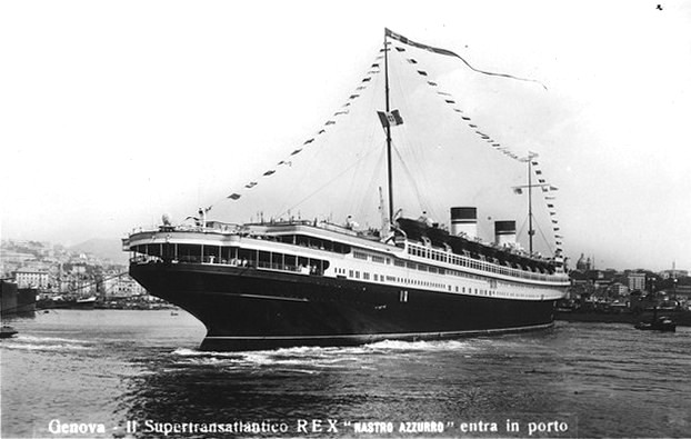 Fotografia raffigurante alcuni passeggeri e ufficiali a bordo della turbonave Andrea Doria, primo da sinistra il comandante Piero Calamai
