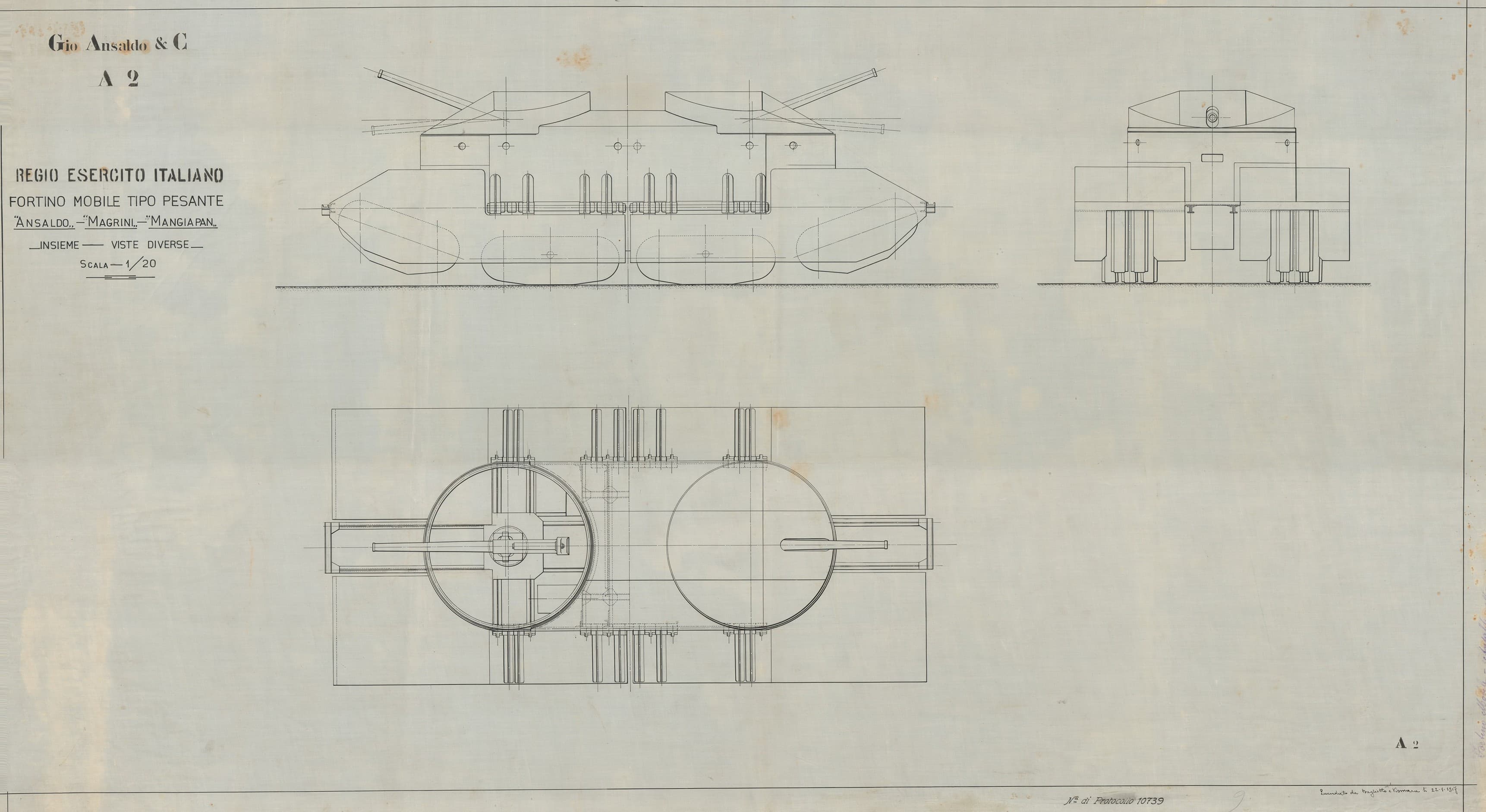 "Gio. Ansaldo & C. A3 - Regio Esercito Italiano - Fortino mobile tipo pesante. Ansaldo - Magrini - Mangiapan - Insieme della zampa"